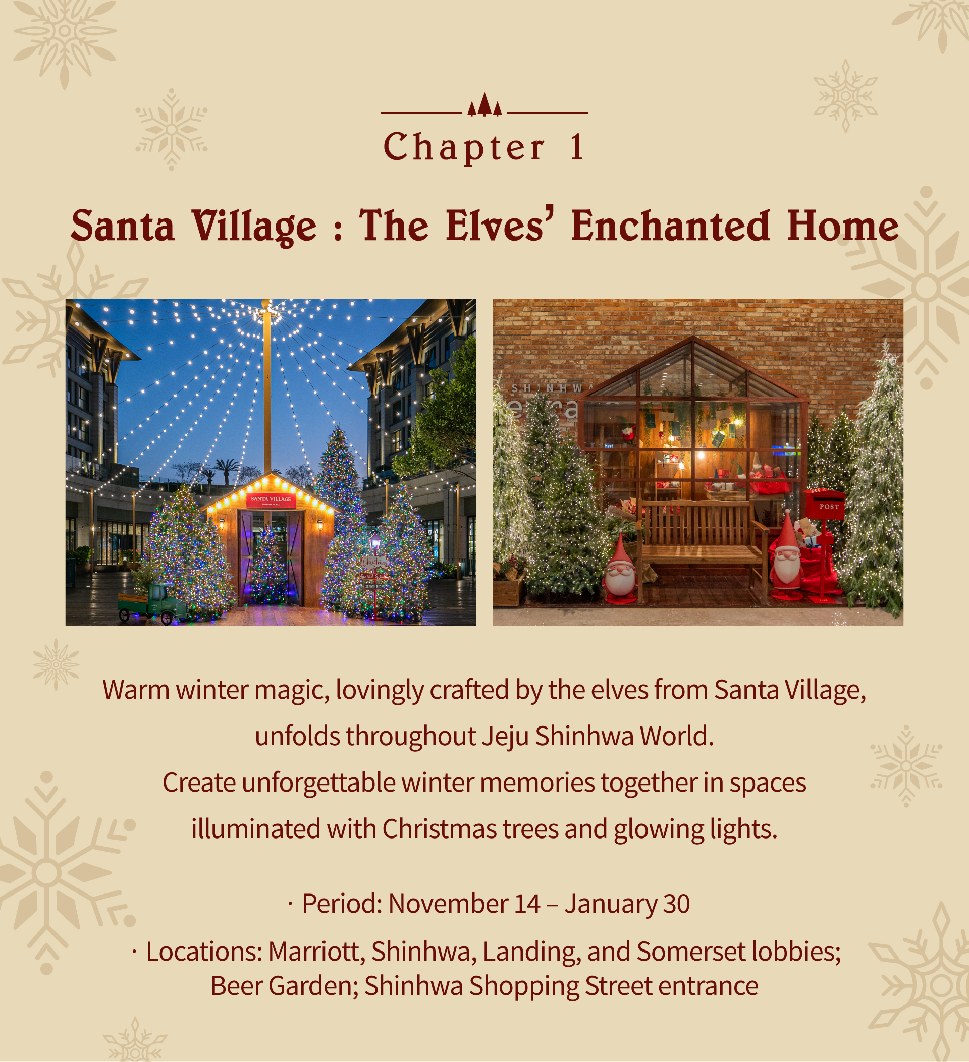 The sparkling excitement of Christmas transforms Jeju Shinhwa World into a magical holiday wonderland.