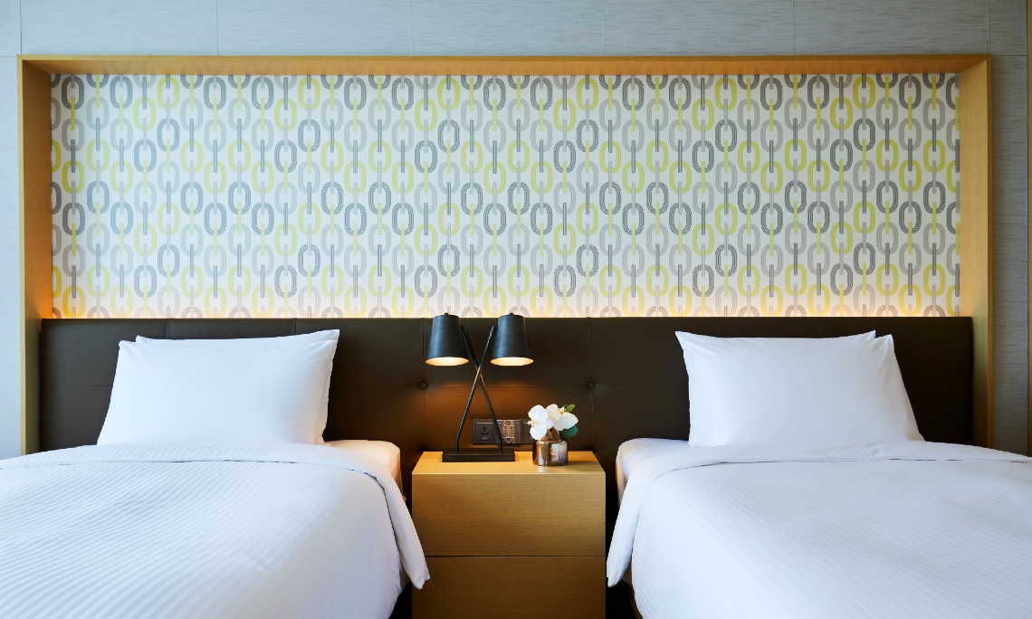 메리어트관의 스탠다드 룸인 디럭스 트윈은 2개의 싱글 베드와 안락한 침구로 쾌적한 휴식환경을 제공합니다. 다양한 음료가 채워진 객실 미니바가 기본으로 제공되며, 55인치 IPTV를 통해 리조트의 정보를 한눈에 확인할 수 있습니다. 버튼 하나로 조절이 가능한 조명으로 아늑한 무드를 연출할 수 있고 독특한 분위기를 자아내는 욕실에는 'This Works'의 욕실 어메니티가 비치되어 있습니다.