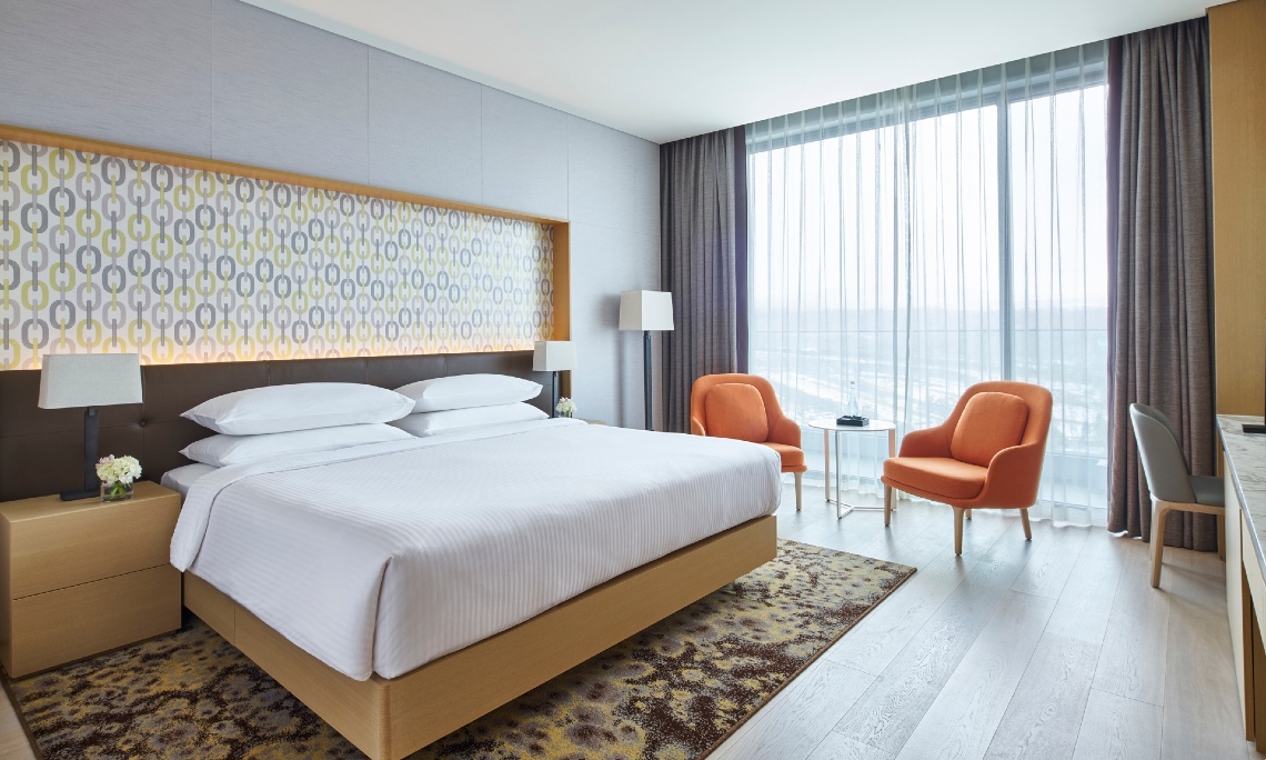 킹은 넉넉한 킹사이즈 베드와 포근하고 안락한 침구로 휴양지에서의 여유를 만끽하실 수 있습니다. 다양한 음료로 채워진 객실 미니바가